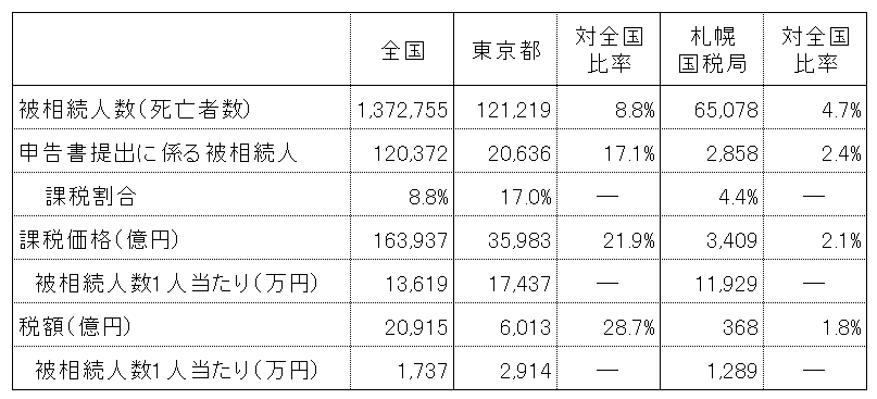 2 全国、東京都、札幌国税局管内の相続税の課税状況