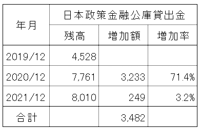 また、コロナ禍の金融で大きな役割を果たしたのが、政府系の金融機関である日本政策金融公庫です。