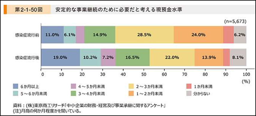 「中小企業白書 安定的な事業継続のために必要だと考える現預金水準」