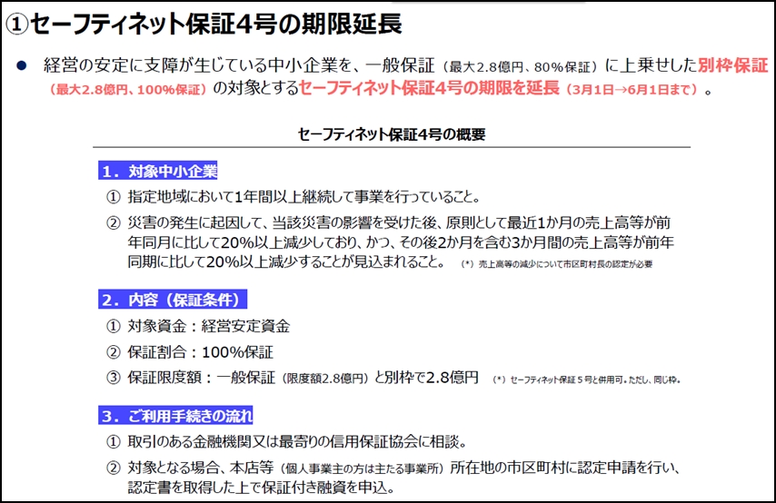 ①セーフティネット保証4号の期限延長